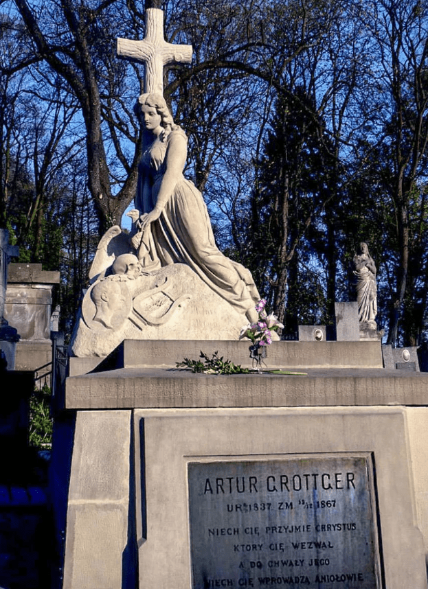Ванда продала все свои драгоценности и часть приданого, чтобы тело Гроттгера привезли в Украину. Как он и хотел, художника похоронили на Лычаковском кладбище. В гроб положили кольцо Ванды и все письма от нее. Знакомый Артура скульптор Филиппи бесплатно изготовил надмогильник, а скульптуру под крестом собственноручно создала Ванда.